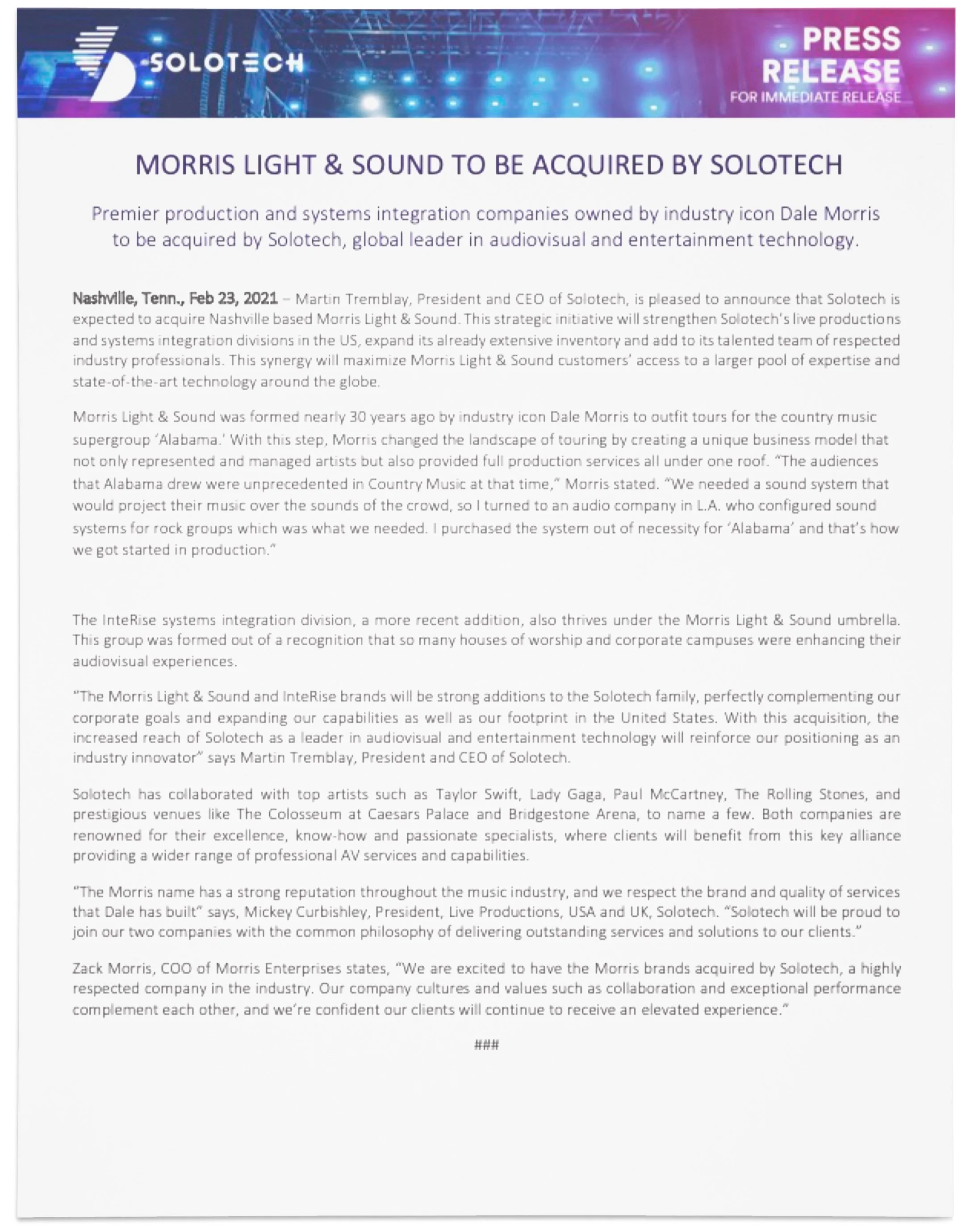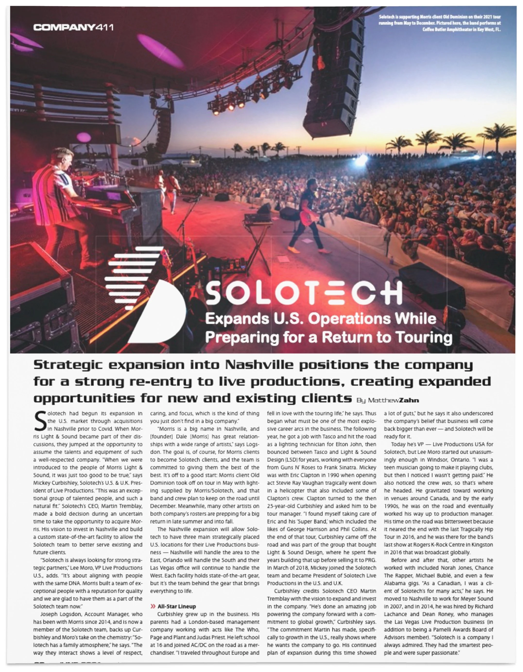 After the acquisition of Morris Light & Sound and InteRise, I was brought on board the Solotech team to complete the brand transition as well as lead the marketing efforts for Solotech’s U.S. based Live Productions and Systems Integration teams. I partnered with the global marketing team based in Montreal to develop and execute digital marketing plans for the North American locations which included strategic press features, video case studies and social media collaborations. These efforts grew Solotech’s social media reach by 28% and reached a larger demographic in the United States compared to the previous year.